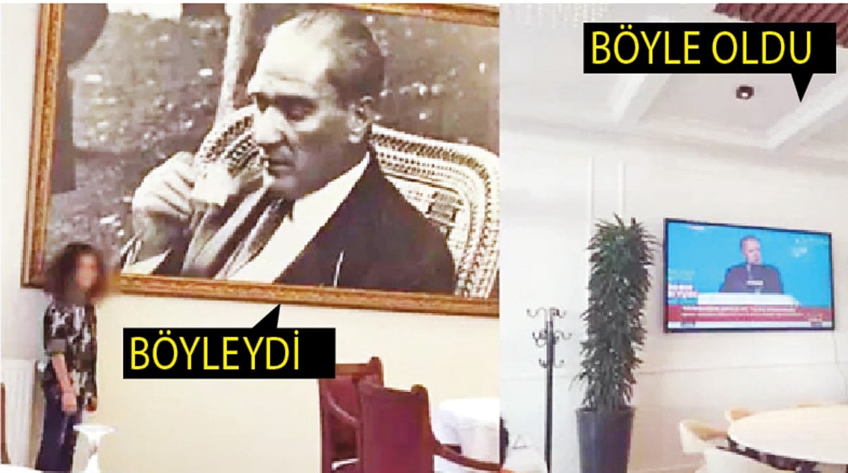İstanbul Florya Atatürk Deniz Köşkü’nün lokanta bölümünde Ulu Önder’in duvardaki fotoğrafını kaldırıp yerine televizyon konulduğu ortaya çıktı.