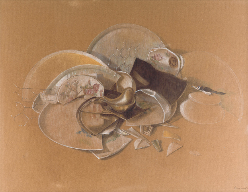 İlhan Sayın, Altın Kuş – Yuva 2, kağıt üzerine toz pastel ve renkli kuru boya | Fotoğraf: Koray Şentürk