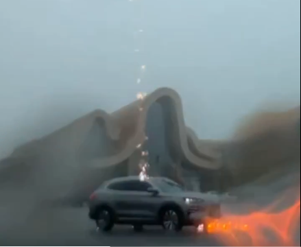 Elektrikli BYD SUV’un sahibi, Çin’in Beihai kentinde seyir halindeyken saniyeler içinde üç kez yıldırım düşmesi sonucu çok sarsılmış olmalı ancak aracın tavanında sadece iki çizik oluştu.